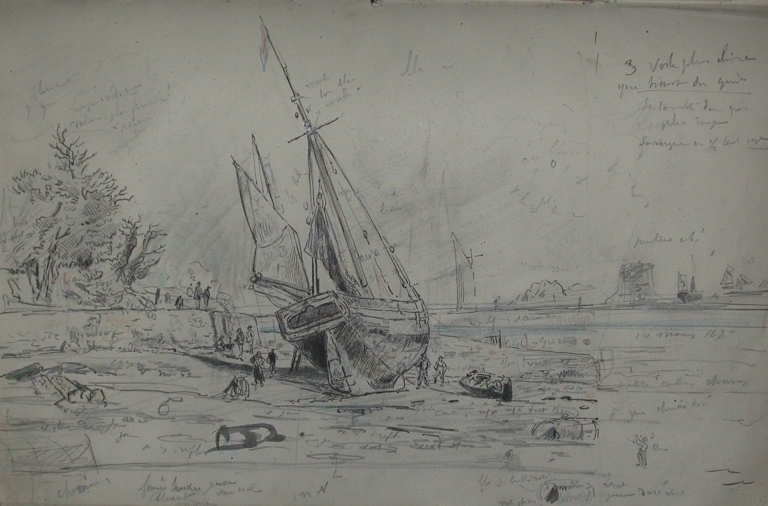 Dessin de Faudacq : échouage d'un caboteur, gréé en dundee, au niveau de l'ancien môle, fin 19ème siècle (collection particulière)Immatriculation