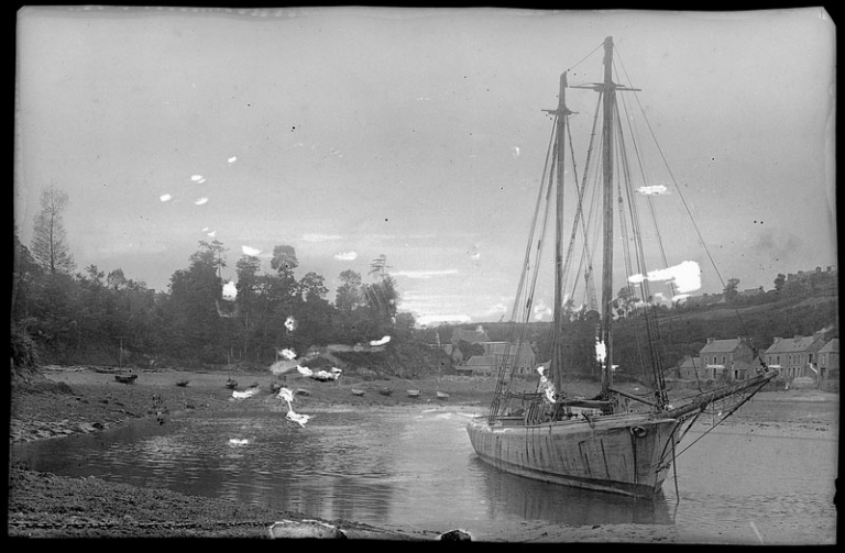 Goélette de cabotage devant le Prostern, 1er quart 20ème siècle (fond Lacombe, AD 22)Immatriculation
