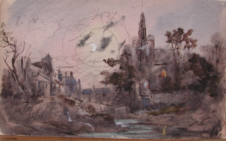 Dessin aquarellé de Faudacq : le fond du port sous le bourg, 4ème quart 19ème siècle (collection particulière)Immatriculation