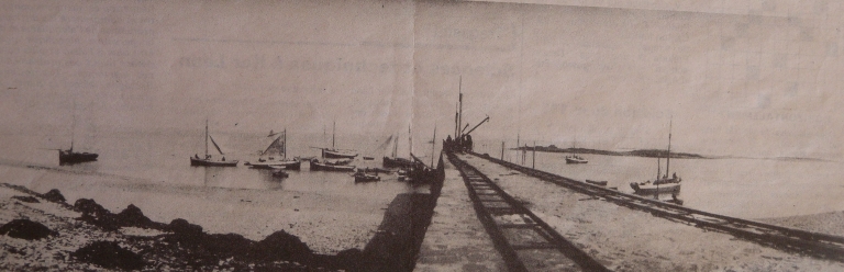 Vue de la jetée de Penn Lann, avec les bateaux goémoniers et les borneurs, 1er quart 20ème siècle (collection particulière)Immatriculation