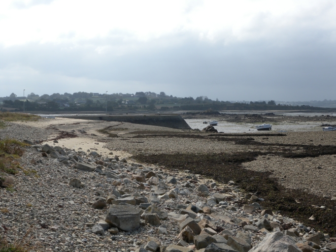 Vue de l'avant-port et du grand cordon de galets à marée basseImmatriculation