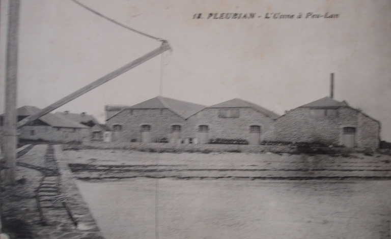 Vue de l'ancienne usine de Penn Lann, avec la jetée, les rails et la grue, 1er quart 20ème siècle (carte postale, collection particulière)Immatriculation
