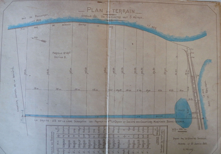 Plan de limite de propriété pour la Société des chantiers maritimes Bonne-Lesueur en 1919 (collection particulière)Immatriculation