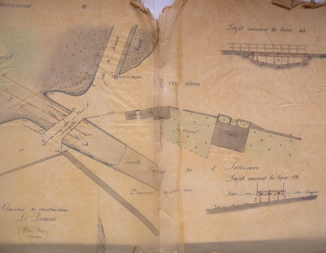 Plan du port de Paimpol en 1877 : emplacement des chantiers navals et projet de pont mobile à Kernoa (AD 22)Immatriculation