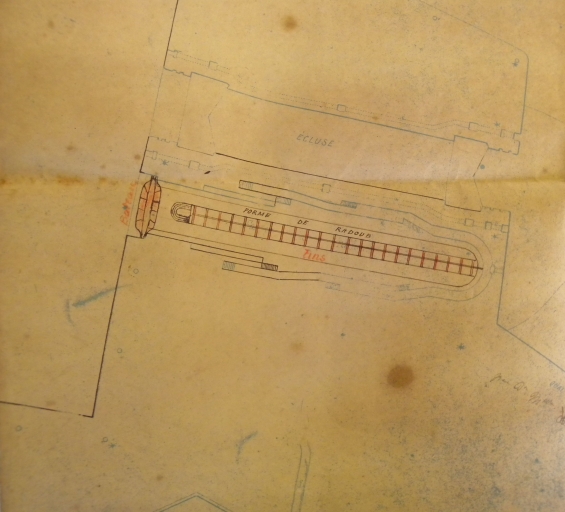 Plan : vue de la forme de radoub et de l'emplacement prévu du du bateau-porte en projet, 1886 (AD 22)Immatriculation
