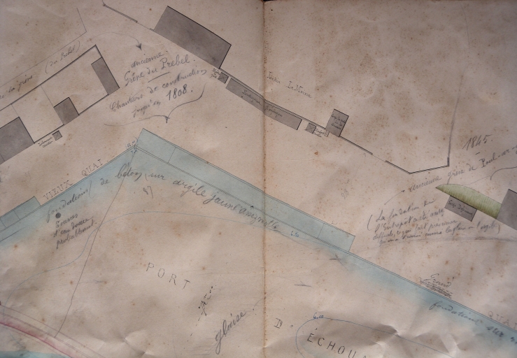 Plan d'une partie du port de Paimpol en 1878, dont l'emplacement des anciens chantiers de construction jusqu'en 1808 (AD 22)Immatriculation