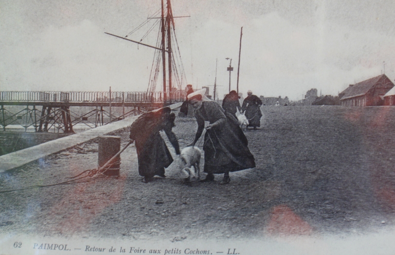 Embarquement des petits cochons à la cale de Bréhat, 1er quart 20ème siècle (carte postale, collection particulière)Immatriculation