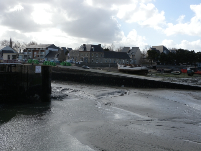 Vue de la cale des Bréhatins entre l'écluse, le déversoir et la jetée du Champ de foireImmatriculation