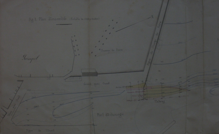 Plan : prolongement de la cale à l'extrémité du grand quai Ouest, 1889 (AD 22)Immatriculation