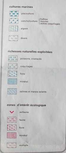 Inventaire Permanent du Littoral, 1977, légendes : cultures marines, richesses naturelles exploitées, zone d'intérêt écologique (IGN, 1981)Immatriculation