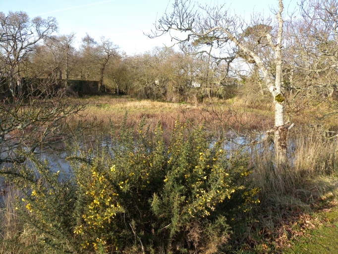 Vue des zones humides devant l'entrée Nord de l'abbaye, par grande maréeImmatriculation
