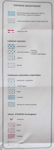 Inventaire Permanent du Littoral, 1977, légendes : richesses aquatiques, cultures marines, zone d'intérêt écologique (IGN, 1981)Immatriculation