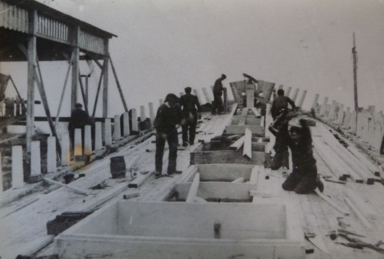 Vue des ouvriers sur une le pont d'un grand navire en construction, chantiers Bonne à Poulafret-Kérity, 1er quart 20ème siècle (collection particulière)Immatriculation