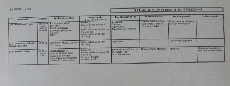 Dans : 'Les espaces littoraux remarquables des Côtes d'Armor'/ Rennes : DIREN Bretagne, 1998, p. 125.Tableau.