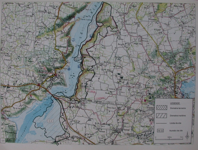 Carte des espaces littoraux remarquables de la commune de Paimpol : estuiare du trieux et anse du Lédano (DIREN Bretagne, 1998)Immatriculation