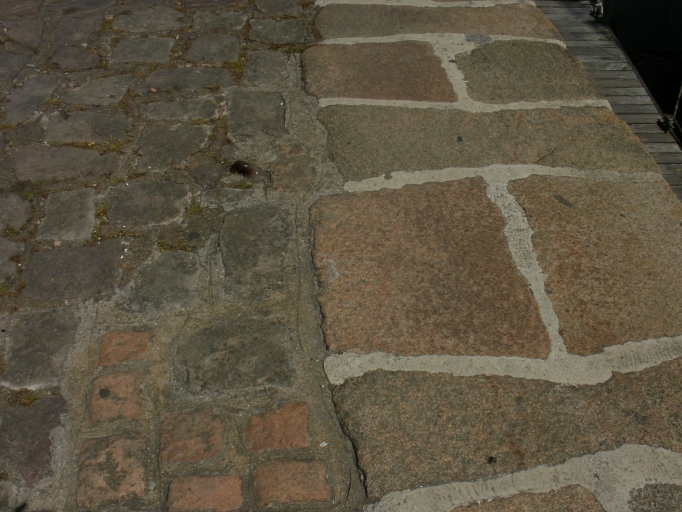 Vue de détail de la disposition des pierres de taille et des moellons de granite du Quai LotiImmatriculation