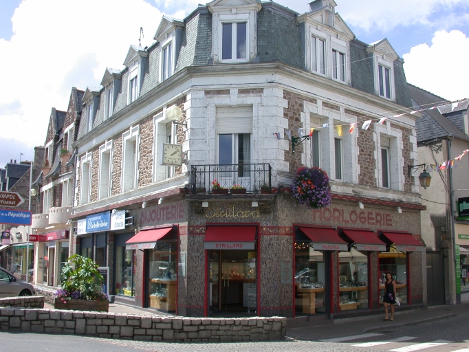 Vue des maisons de commerce datées du 1er quart du 20ème siècle, dont la bijouterie Etrillard, avec sa façade en mosaïque décorée par OdoricoImmatriculation