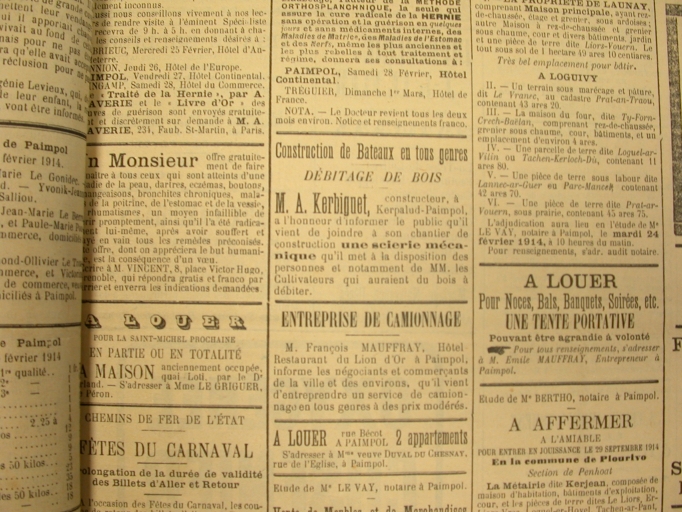 Dans 'Le Journal de Paimpol' /Paimpol, février 1914.Extrait de journal.