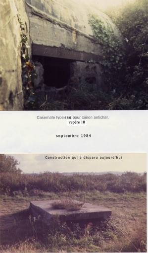 Casemate, type 680, canon antichar, repère n° 10 et soute à munitions, disparue (carte, Alain Bohée, collection particulière)Immatriculation
