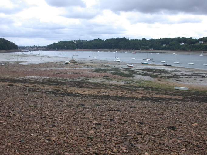 Vue de la grève de Coz Castel, appropriée en partie aujourd'hui par des parcs à huîtresImmatriculation