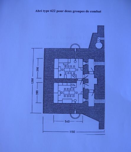 Plan d'un abri type 622 pour 2 groupes de combat ( Alain Bohée, collection particulière)Immatriculation