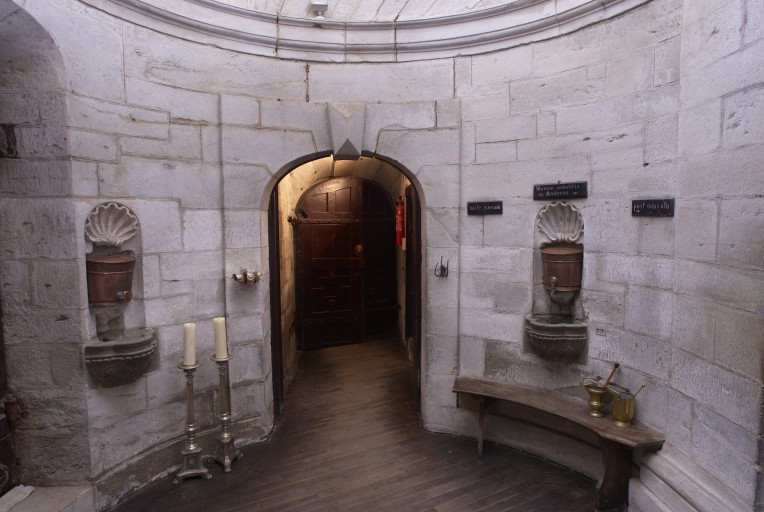 Sacristie, vue intérieure : porte et vasquesImmatriculation