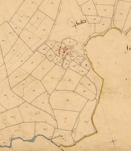 Le hameau du Helles et la motte castrale dite Castell Helles. Extrait du cadastre ancien de 1835, section C1 parcelle 173 (A.D. 29, série 3P 082 10)Immatriculation