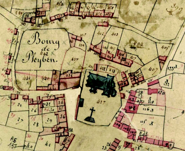 L'édifice sur le cadastre de 1813, assemblage des sections C 1, E 1, G 1, H 1, J 2, O 2 (A. D. Finistère, 3 P 163)Immatriculation
