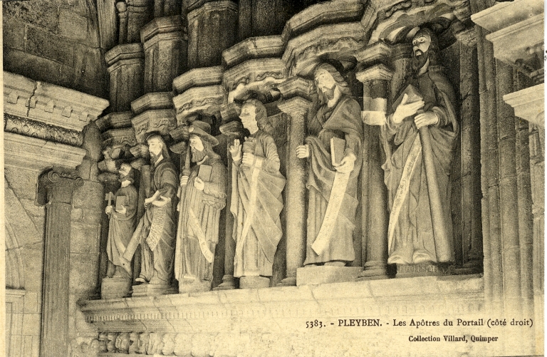 Porche sud de l'église, vue des apôtres côté est (fonds Villard, carte postale début 20e siècle)Immatriculation