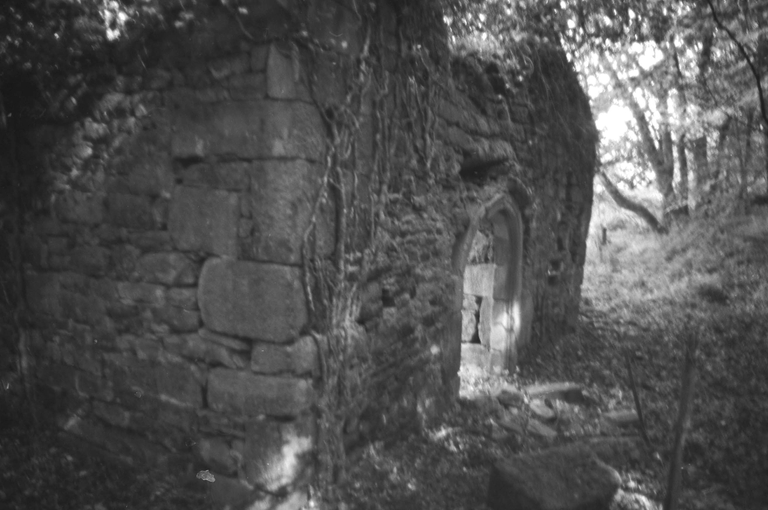 Vue des vestiges de la chapelle située au nord du château, photographie de 1974Immatriculation