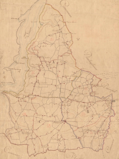 Le cadastre de 1831, mémoire de la spécificité du territoire paimpolais né de la fusion de trois anciennes communes : tableau d'assemblage de l'ancienne commune de Plounez (AD 22Immatriculation