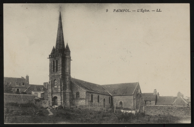 Paimpol, le centre-ville. Vue générale de l'ancienne église paroissiale de Paimpol au début du 20ème siècle (AD 22)Immatriculation