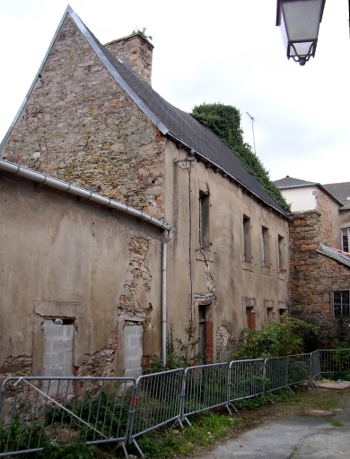 Paimpol, le Centre-Ville. Habitat désaffecté dont la volumétrie et la forme de la toiture accusent des traits d'ancienneté.Immatriculation