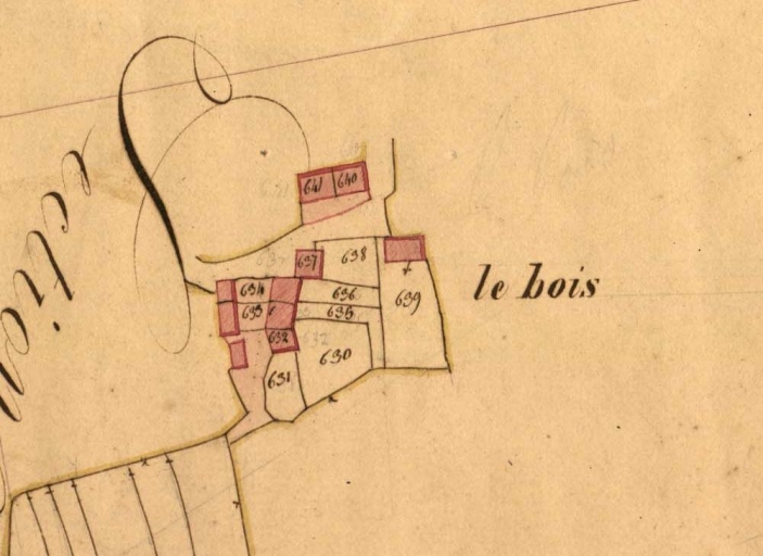 Extrait du cadastre de 1833, le Bois, parcelles 640 et 641Immatriculation