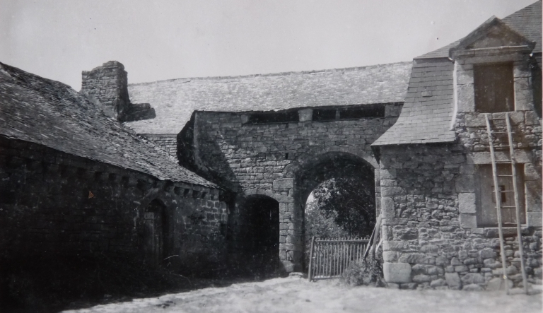 A l'ouest de la cour : chapelle, ouvrage d'entrée et corps de bâtiment couvert d'un toit brisé.Immatriculation