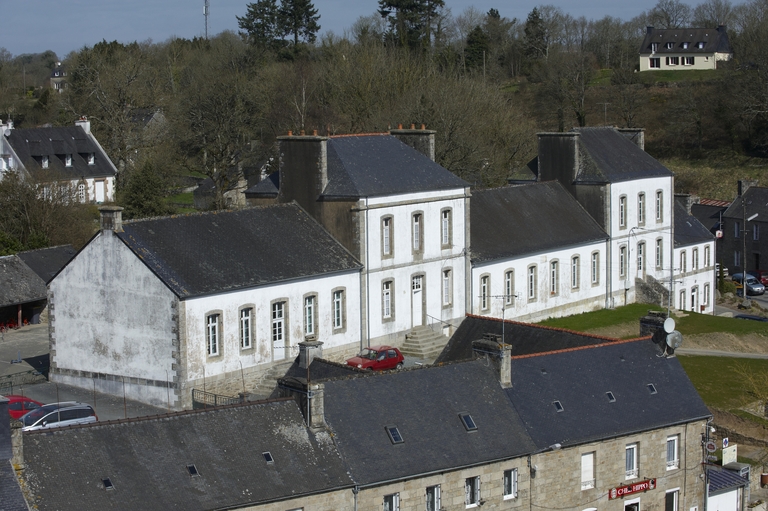 Loguivy-Plougras, église paroissiale Saint-Emilion : vue du bourg depuis le clocher, école mairieImmatriculation