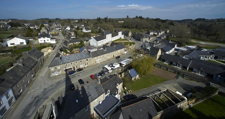 Loguivy-Plougras, église paroissiale Saint-Emilion : vue du bourg depuis le clocherImmatriculation
