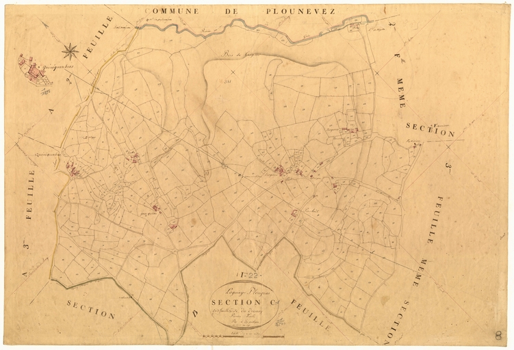Feuille C1 du cadastre ancien de la commune de Loguivy-Plougras, 1834Immatriculation