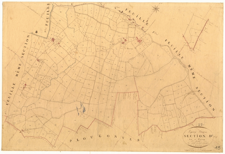 Feuille D3 du cadastre ancien de la commune de Loguivy-Plougras, 1834Immatriculation