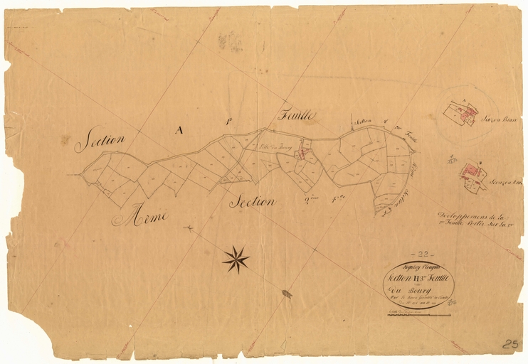 Cadastre ancien, commune de Loguivy-Plougras, 1 tableau d'assemblage et 25 feuilles, 1834.Cadastre.
