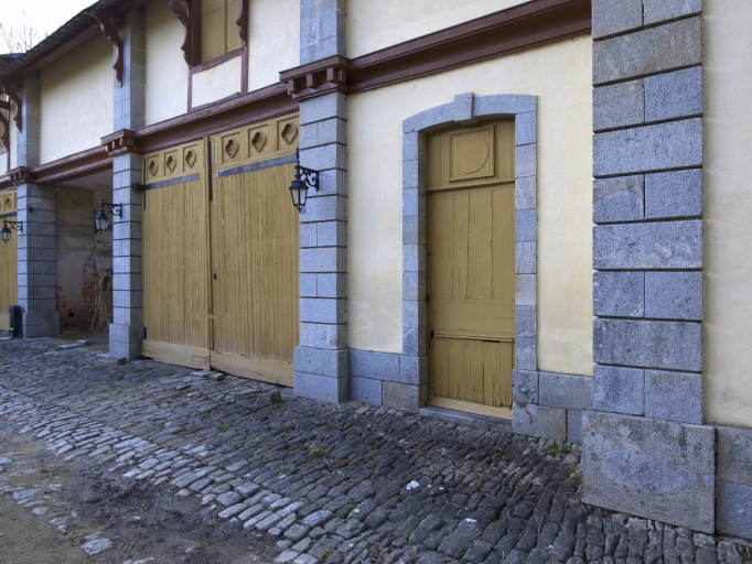 Communs, élévation est, partie centrale, détail des portesImmatriculation