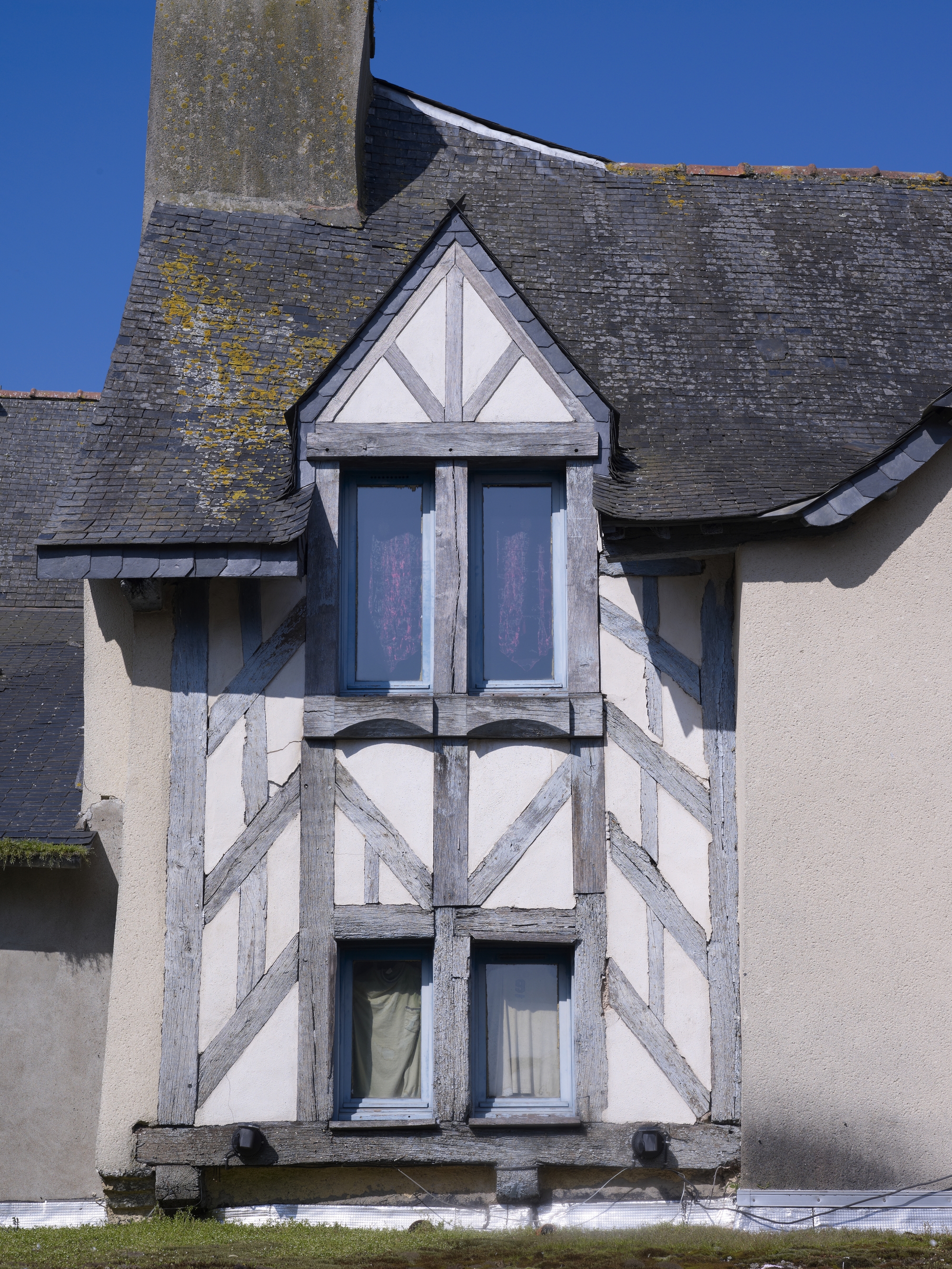 Maison, élévation donnant sur la rue Saint-Pierre : fenêtres et pan de bois (état en 2011)Immatriculation