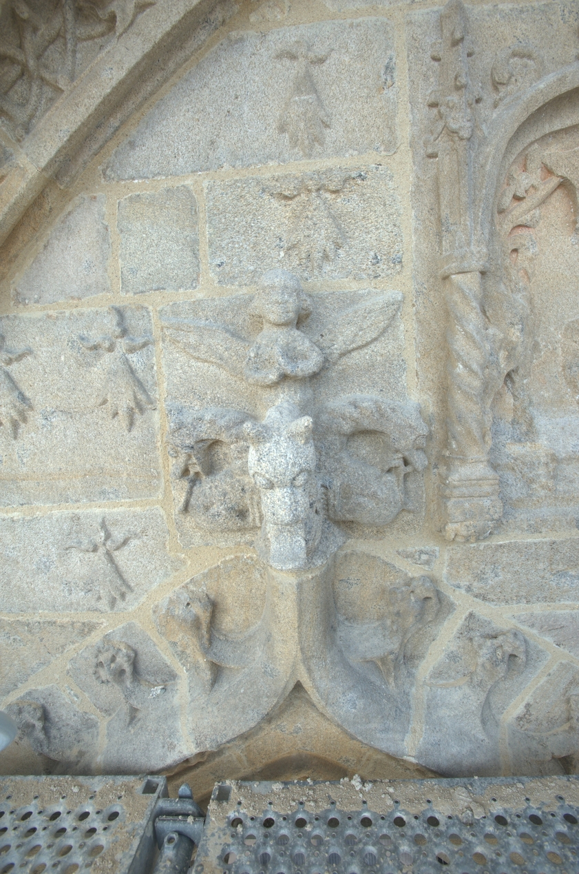 Porche nord détail fleuron et semis d'herminesImmatriculation