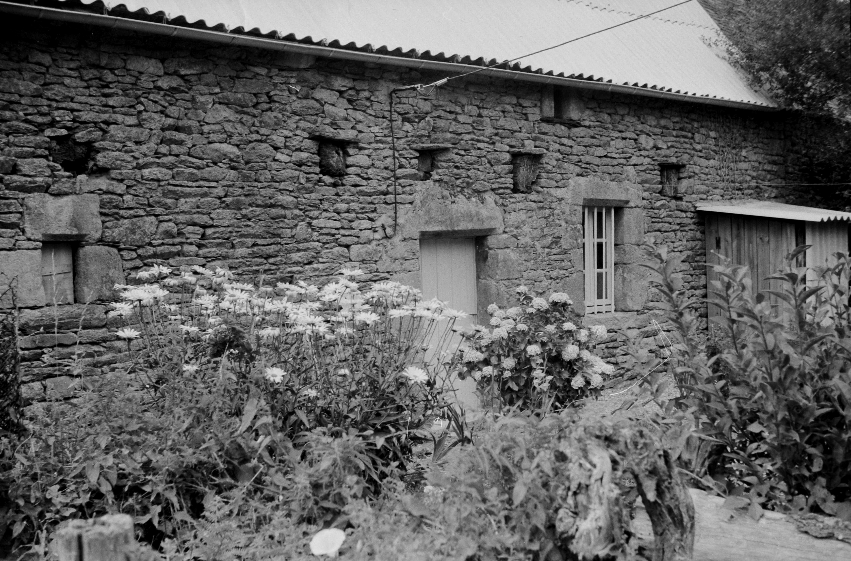 Ferme 43 : chaque about de poutre qui soutient le plancher du grenier est protégé de l'eau par une plaque de schiste, appelé larmier (état en 1969)Immatriculation