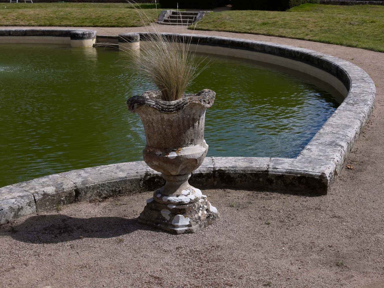 Vue de détail du jardin sud et du miroir d'eauImmatriculation