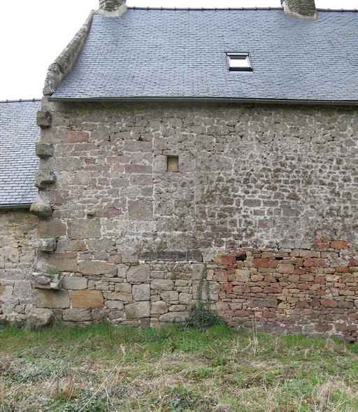 Vue de détail de l'élévation postérieure orientée vers l'est : portes haute et basse muréesImmatriculation