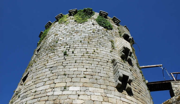 Vue de la tour nord dite dite tour de Rougé : détail des trois latrines en encorbellementImmatriculation