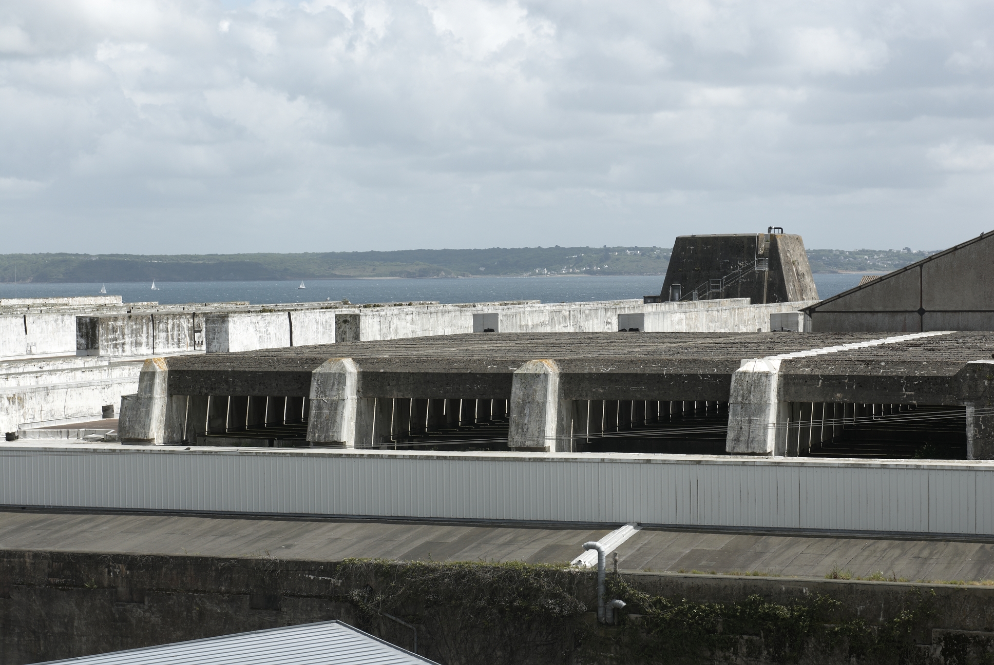 Vue de la base de sous-marins depuis la route de la Corniche : chambres d´explosion du toitImmatriculation