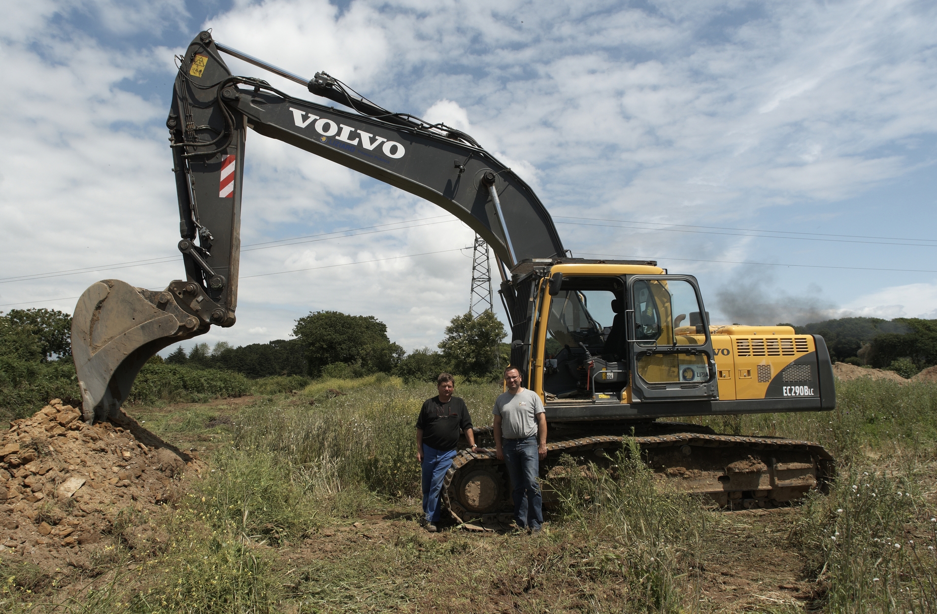 Conducteurs de grue ayant participé à la déconstruction des bunkers. Les conducteurs posent pour le photographeImmatriculation