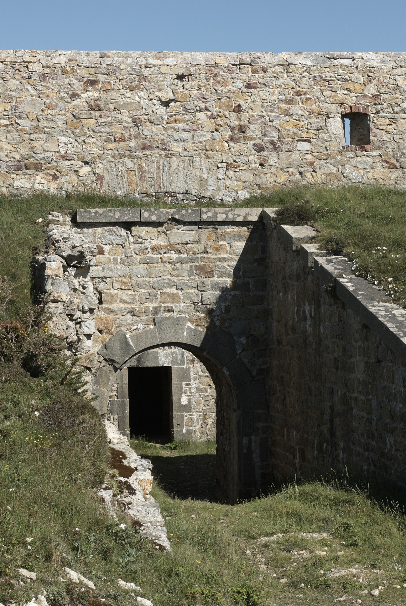 Camaret-sur-Mer, pointe du Toulinguet : vue du mur défensif percé de créneaux de fusilladeImmatriculation